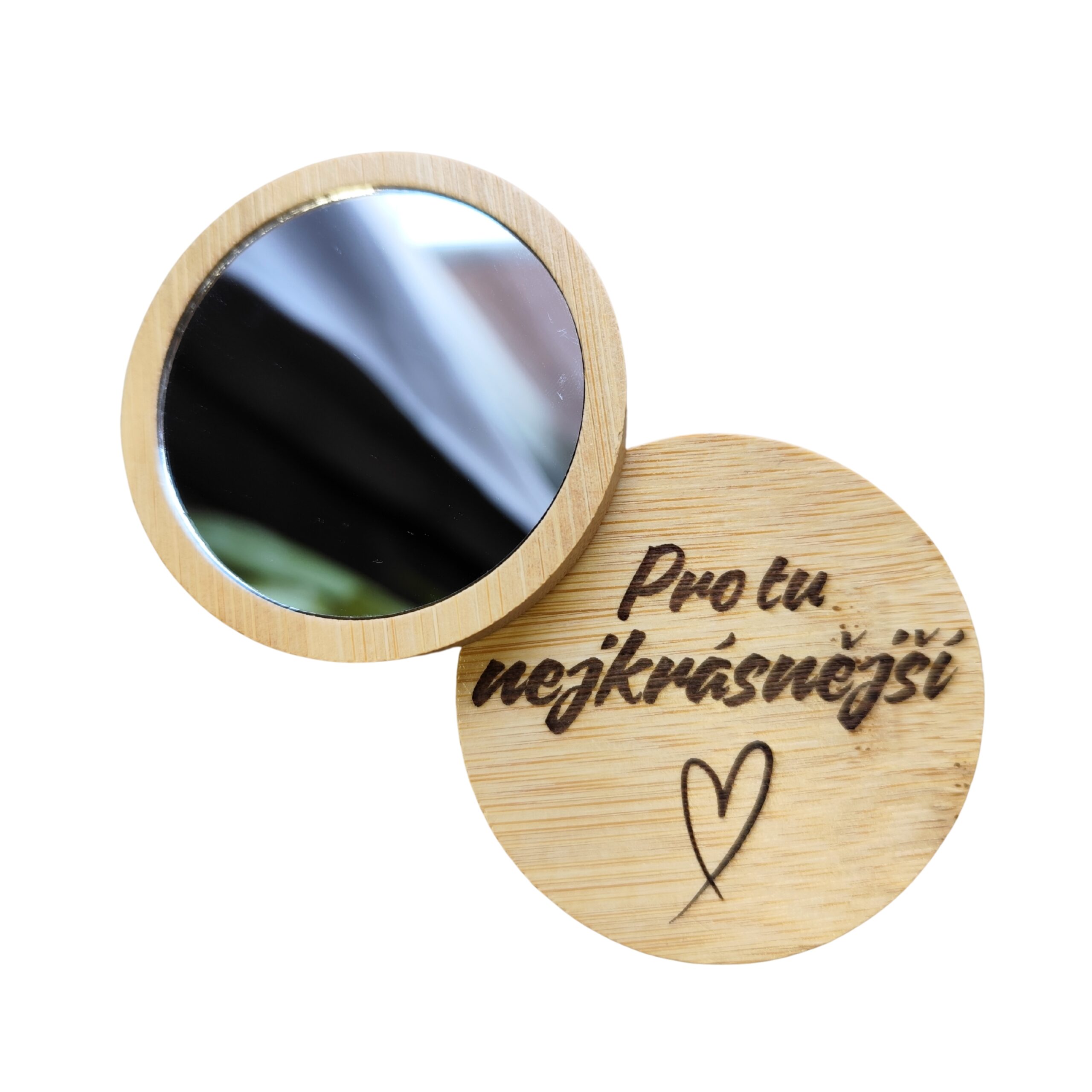 Gravírované kapesní zrcátko ze dřeva je krásná maličkost, která vykouzlí úsměv při každém použití.