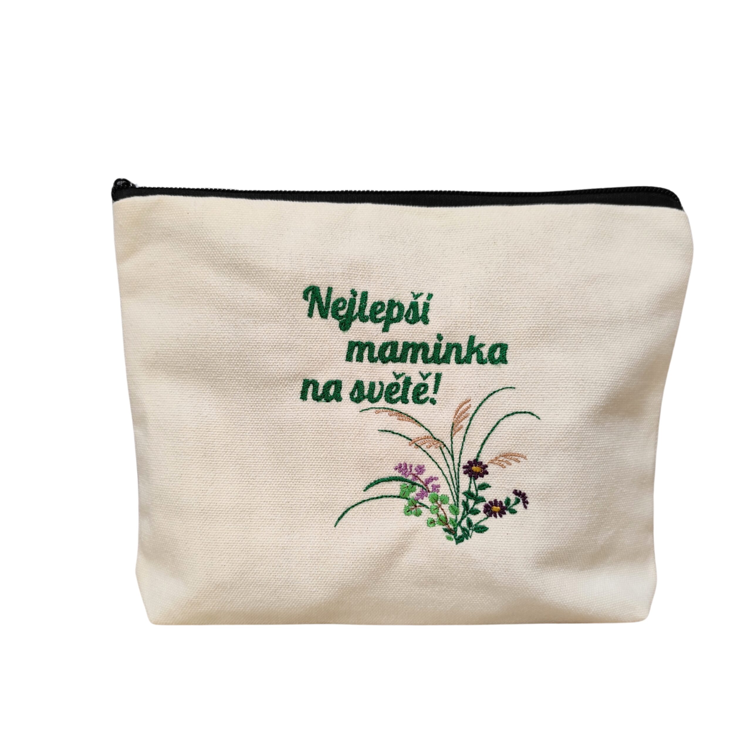 Lehká a praktická plátěná taštička z bavlny „Nejlepší maminka na světě“ je krásným a osobním dárkem ke Dni matek.